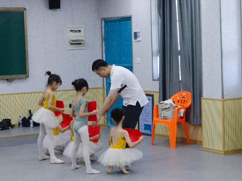 舞蹈项目团队负责人陈蕾老师和郑萌老师,带领学校高水平舞蹈团的学生团队一起来到了京陇学校。他们刚完成了学校“五月放歌音乐季”美育课程成果展示的舞蹈专场演出,向一万多师生展示了他们从零基础开始的舞蹈学习成果,获得师生一致好评。这次他们利用暑假时间来到揭阳,用他们在学校舞蹈团里学到的技能,给京陇学校孩子们的舞蹈进行了排练。