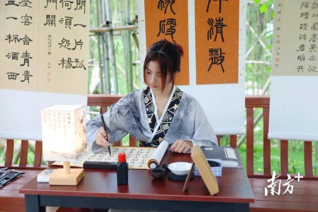 现场还设置了汉服体验打卡区域,学生们穿着齐腰襦裙、旋裙、交领、披帛等各类传统服饰,到小桥流水、红墙绿瓦、亭台楼阁等“打卡点”拍照留念,沉浸式体验中华优秀传统文化的独特魅力。