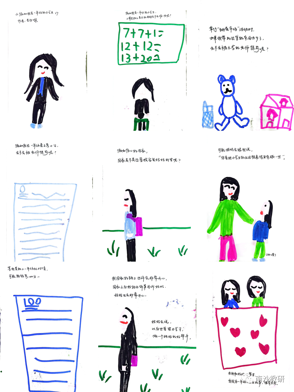 在自主游戏时间,在阅读区的怡琳拿起画纸、画笔描绘着她心中的故事。“我的故事叫做《假如我是一年级的小学生》,假如我是一年级的小学生,上课时黑板上显示的题目是不是会难一些?假如我在一年级考了0分,小学老师会不会惩罚我呢?假如我伤心的回家,是不是还要挨爸爸妈妈的骂呢?可是,妈妈跟我说,要把小学生的生活想象得有趣一些。嗯,也许等我真的上了一年级,我会考100分。回家的路上,我会非常开心,回到家以后,我把这件事告诉妈妈,妈妈也会非常开心。”