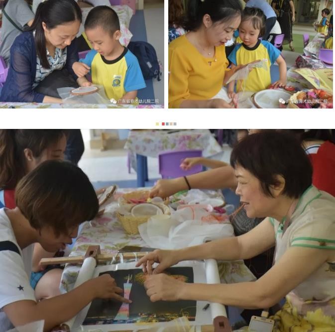 同时,我院在艺术节上邀请家长、“非遗”民间艺人进幼儿园,与幼儿一起近距离体验、感受岭南地区传统文化的独特魅力。剪纸、广绣、广式茶点、粤剧等非遗文化项目,让幼儿在视、听、触、嗅等多通道感知非遗文化的独特魅力。