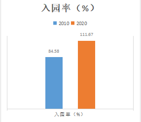(一)入园率大幅度提高。全市学前三年入园率从2010年84.58%至2020年提升到111.67%,增幅达27.09%;全市在园幼儿数从2010年6.6万人增加至2020年10.5万人,增加约3.9万人。