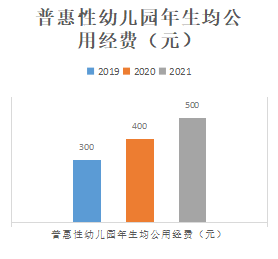 财政性投入不断增长。2015年全市学前教育财政性投入0.53亿元,2020年增至1.23亿元。2020年全市学前教育财政性投入占当年全市国家财政性教育经费总投入的2.5%。从2019年起,我市公办幼儿园年生均公用经费拨款标准为300元,2020年为400元,2021年达到500元,对普惠性民办幼儿园参照公办幼儿园生均公用经费财政拨款标准落实补助。