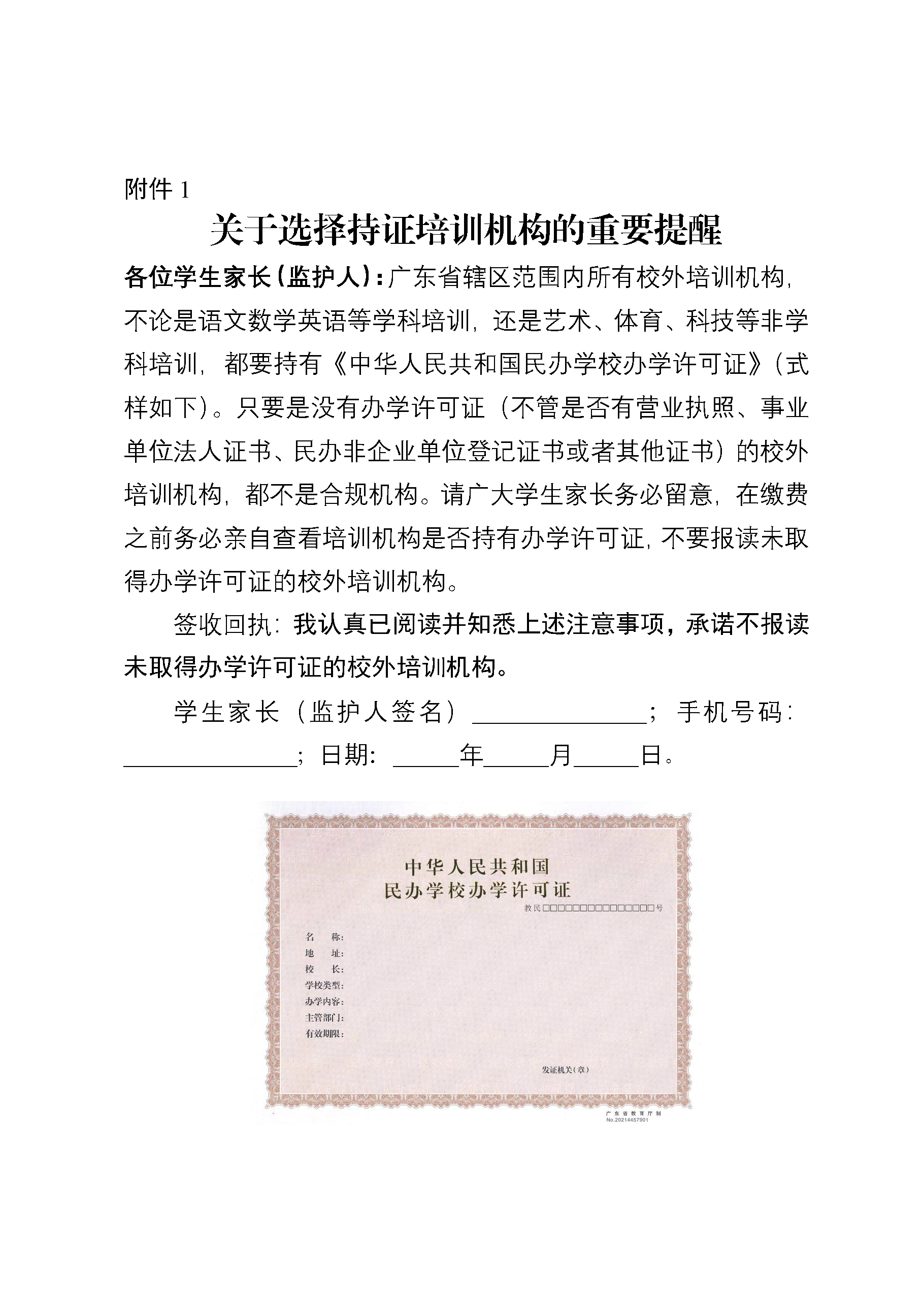 1.关于选择持证培训机构的重要提醒(家长阅读,提交回执)