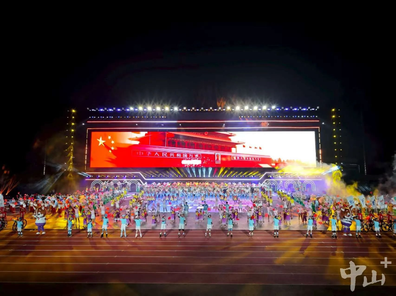 夜幕下的兴中体育场已装扮成梦幻舞台,璀璨灯光勾勒出律动的光影轮廓。随着倒计时视频的最后一声轻响,灯光秀骤然点亮夜空,以《风起岐江边》本届省中运会主题曲为引,开幕式正式拉开帷幕。“汗水和荣耀留在这里”“中山欢迎你”的歌声响起,现场气氛瞬间被点燃。