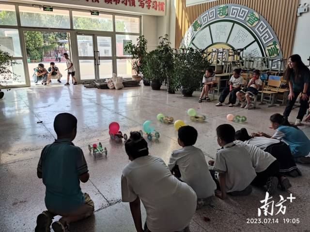 如何让小学生听得明看得懂,团员们想了不少办法。“我们定下教学方案后,反复修改打磨,出发前还邀请了几位小朋友试听,收集反馈意见后进一步完善教学细节。”团员钟英宏说,“在课上,每个小朋友都瞪大眼睛,认真观看操作和讲解,生怕错过任何一个步骤,让我们特别欣慰。”