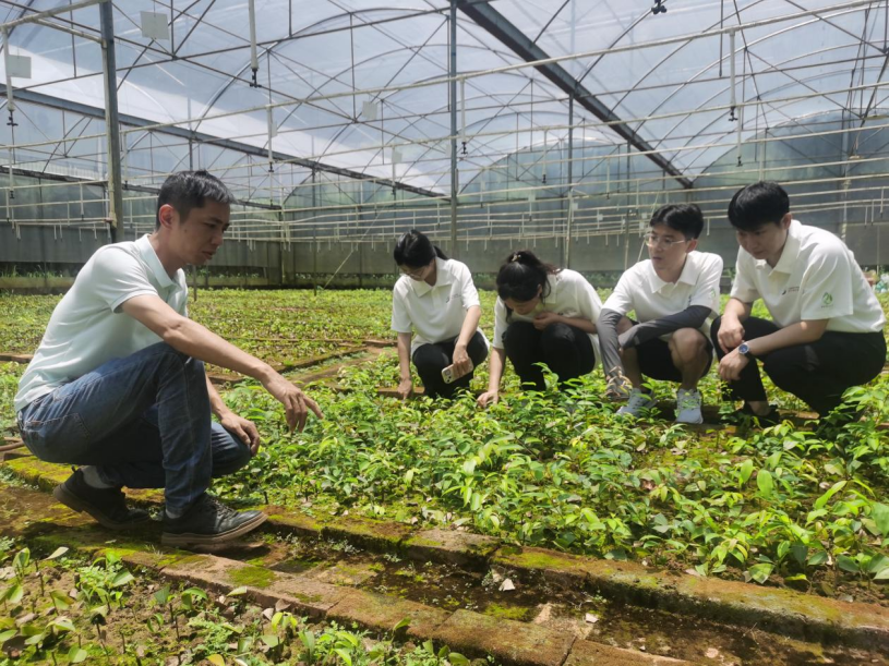 华南理工大学“梅”利乡村团队在梅片树扦插育苗基地了解育苗情况