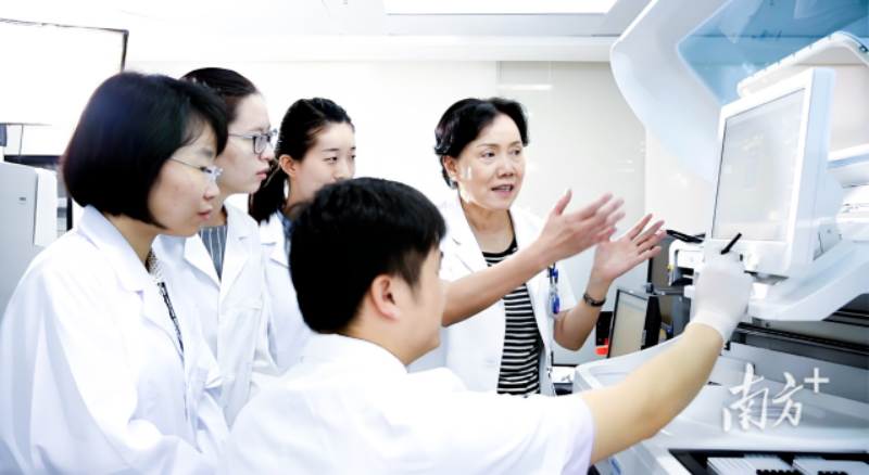 中国科学院院士、南方医科大学教授侯凡凡(右一)带领团队开展研究。