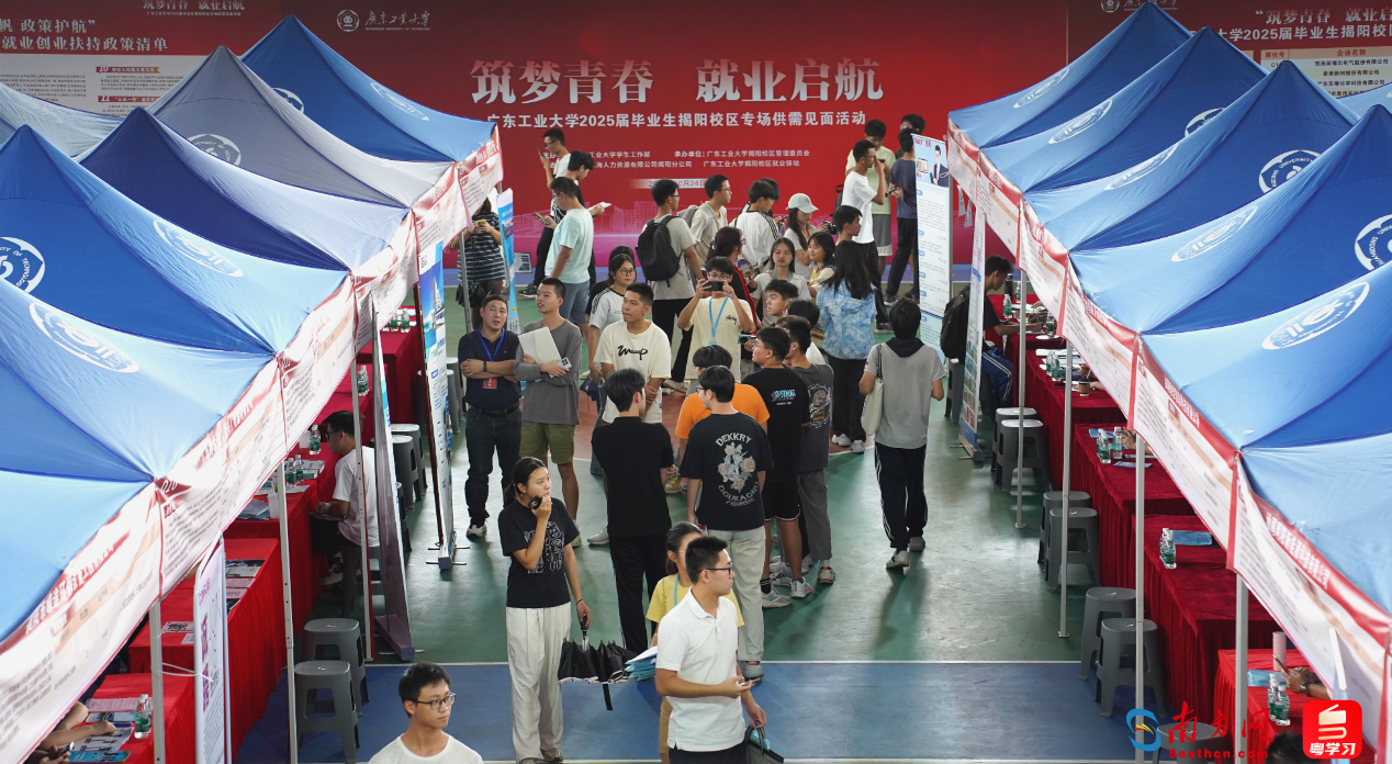 近日,广东工业大学揭阳校区首届本科毕业生供需见面活动在揭阳校区风雨操场举行,52家省内外企事业单位携229个优质岗位来校揽才,近700名毕业生入场求职。