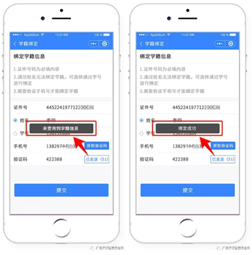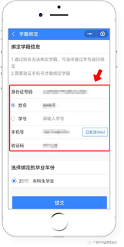 3.若绑定学籍失败,系统会显示具体原因,请重新绑定,成功后提交。
