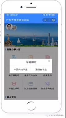 1.进入“广东大学生就业创业”官方小程序,在988Pay左上角找到“用户登录”,点击后出现一个弹窗,出现两个选项:“中国内地学生”“港澳台学生”,选择“中国内地学生”选项。