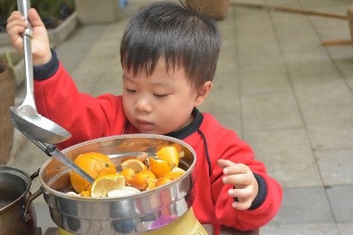 岭南地区流传下来历史悠久的养生和食补文化不仅与幼儿的生活息息相关,还具有丰富的教育意义。荔枝,作为“南国四大果品”之一,常以凉茶相伴。中大班幼儿将人们吃荔枝、喝凉茶的生活状态表现地淋漓尽致。