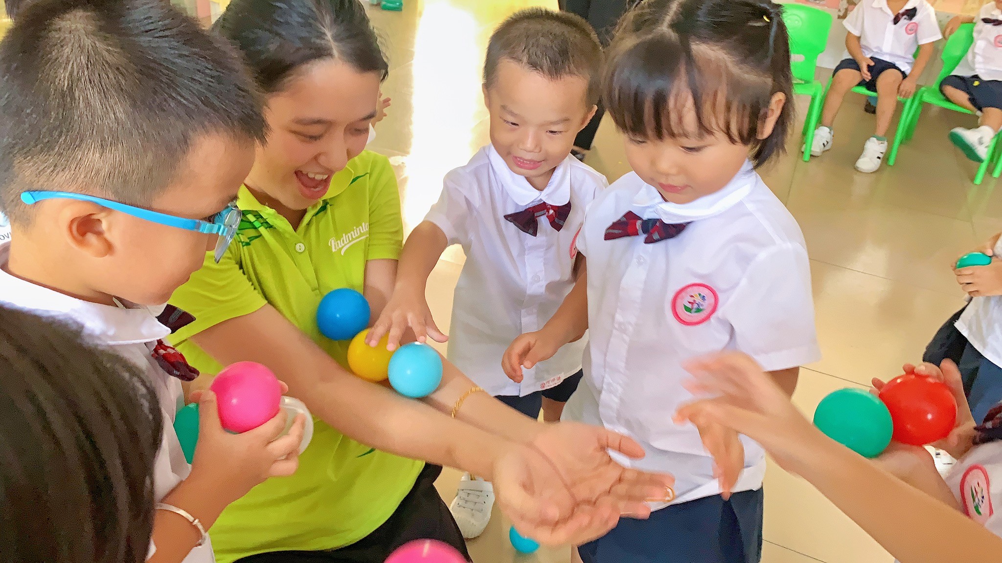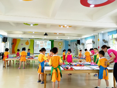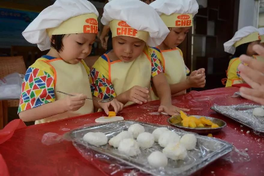 广雅幼儿园的小朋友在进行水上游戏 广州市番禺区北城幼儿园小朋友制作岭南点心