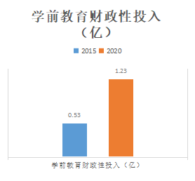 财政性投入不断增长。2015年全市学前教育财政性投入0.53亿元,2020年增至1.23亿元。2020年全市学前教育财政性投入占当年全市国家财政性教育经费总投入的2.5%。从2019年起,我市公办幼儿园年生均公用经费拨款标准为300元,2020年为400元,2021年达到500元,对普惠性民办幼儿园参照公办幼儿园生均公用经费财政拨款标准落实补助。